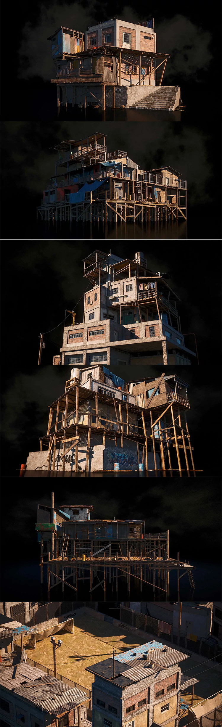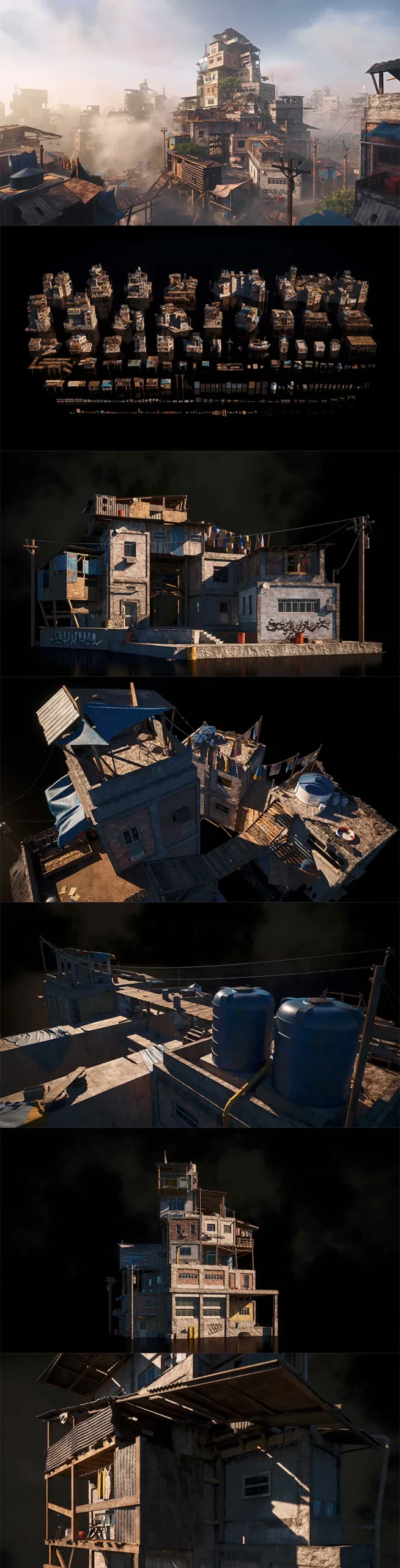 Favelas 3D模型包是一个精心设计的资源包,包含多种贫民窟风格的建筑与道具,旨在帮助游戏开发者和3D艺术家打造生动且真实的城市环境。包内包括各种类型的建筑物,如混凝土公寓、临时住所、商用中心、楼房和车库公寓等,还有大量细节丰富的道具,如水箱、梯子、木桶、窗户、阳台等。这些模型不仅适用于游戏开发,也非常适合影视动画制作、虚拟现实和建筑可视化等项目。通过这套资源包,您可以轻松地创建贫民区环境,展现独特的城市文化和生活场景。