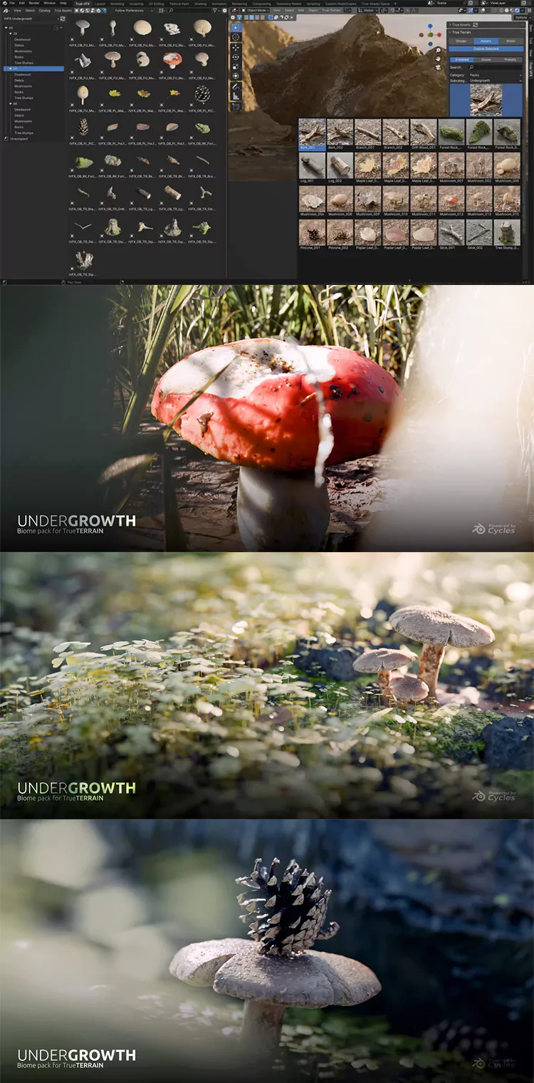 Blender灌木丛木头蘑菇模型资产库 Undergrowth | Asset Library 4K+8K