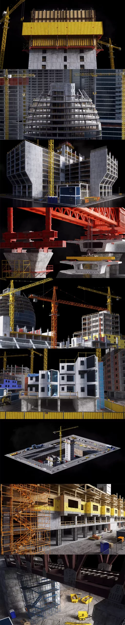 包含了Blender建筑工地的各种资产如:各种建筑、施工设备、起重机、吊塔、工头的拖车、供应棚以及等待组装的成堆的管道和零件等3D模型。这是单独的模型,不是直接做好的场景,每个模型都十分精细,Blender格式,包含2K和4K两种分辨率贴图材质可以选择。