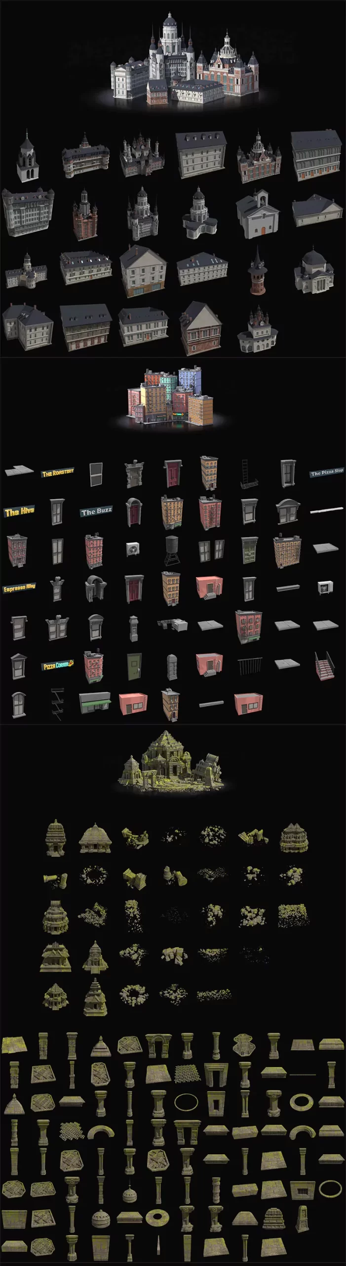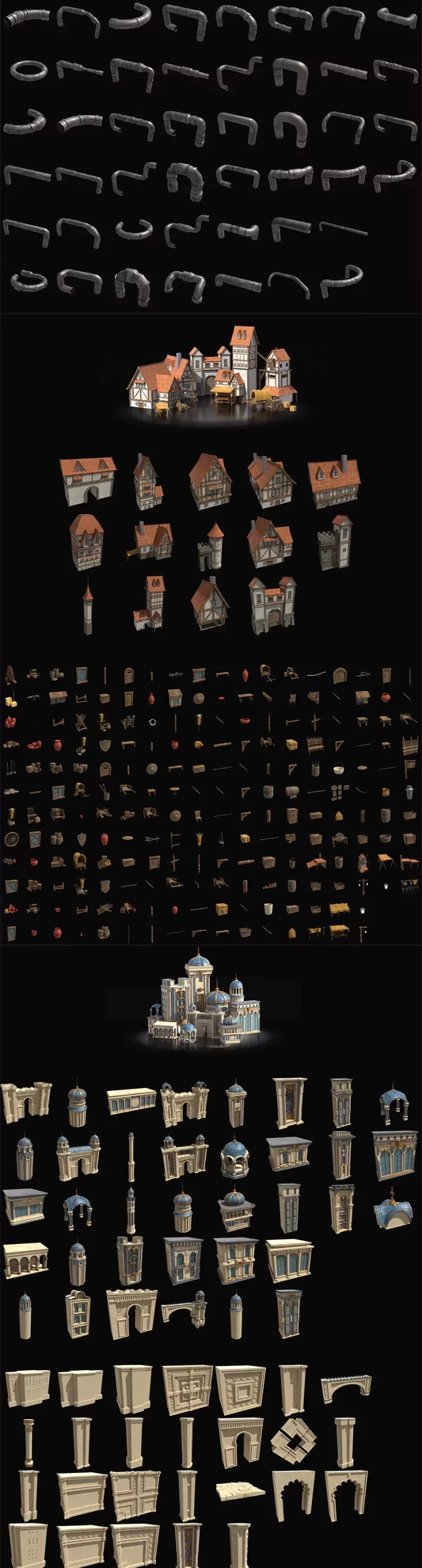 Blender中世纪城镇欧洲亚洲建筑3D模型资产预设,包含超过500组建筑资产预设,包括奇幻、中世纪、欧洲、亚洲等多种风格。