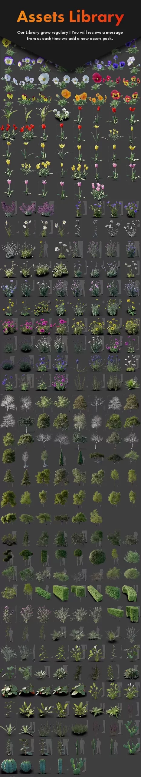 - 丰富的花草植物:预设包中包含了多种花草植物模型,包括花朵、草坪、灌木、树叶等。这些模型可以方便地用于创建各种草地、花园等场景。