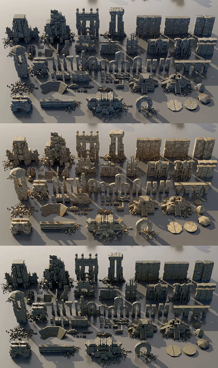 3D模型-神秘石刻寺庙废墟模型资产 Ancient Temple Kitbash (Blender/FBX格式)
