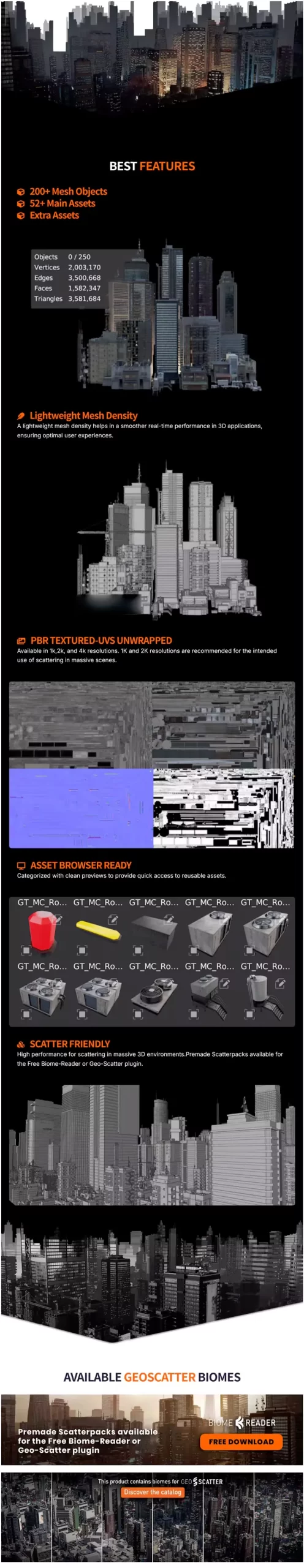 Blender现代城市楼房建筑高楼大厦3D模型资产预设Greeble Town – Skyline Ukiyo Modern Metropolis