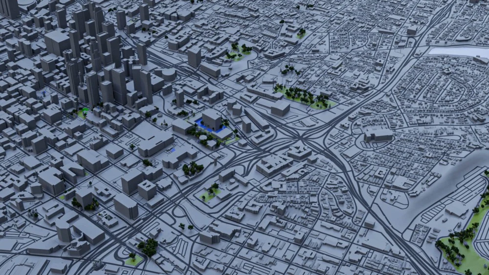 - 这个 3D 城市模型经过地理参考,精确且准确地符合现实世界的比例