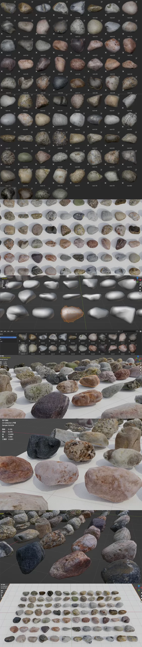 Blender/C4D/FBX/MAX/MB小石头鹅卵石子低模低面写实3D模型资产库