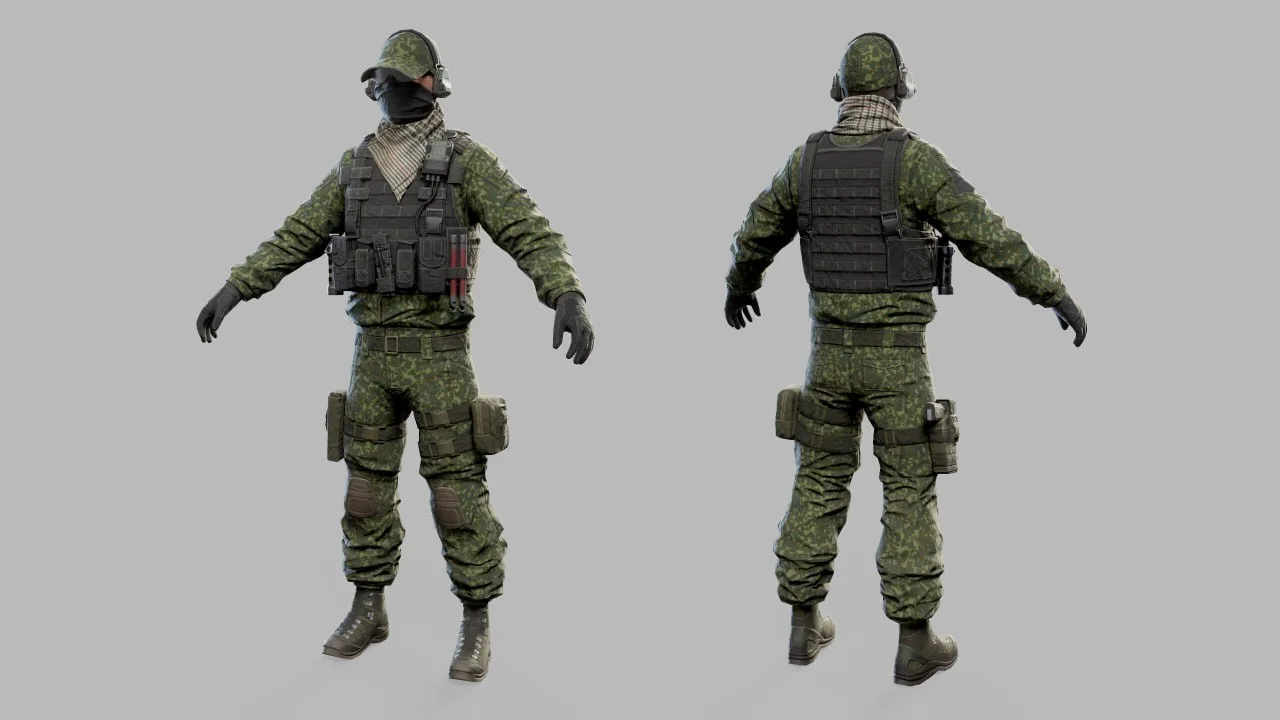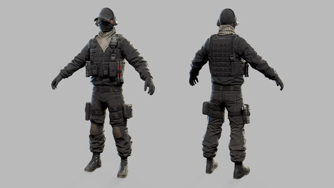 准备好用于游戏的低多边形PBR现代美国突击兵模型。