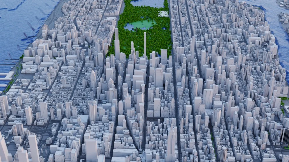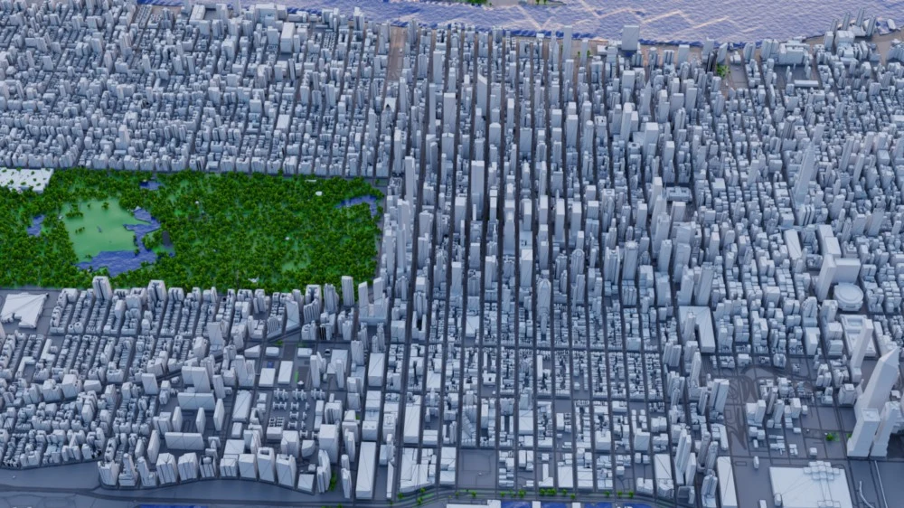 Blender 纽约市及周边地区城市大楼中央公园鸟瞰图场景 3D 模型下载