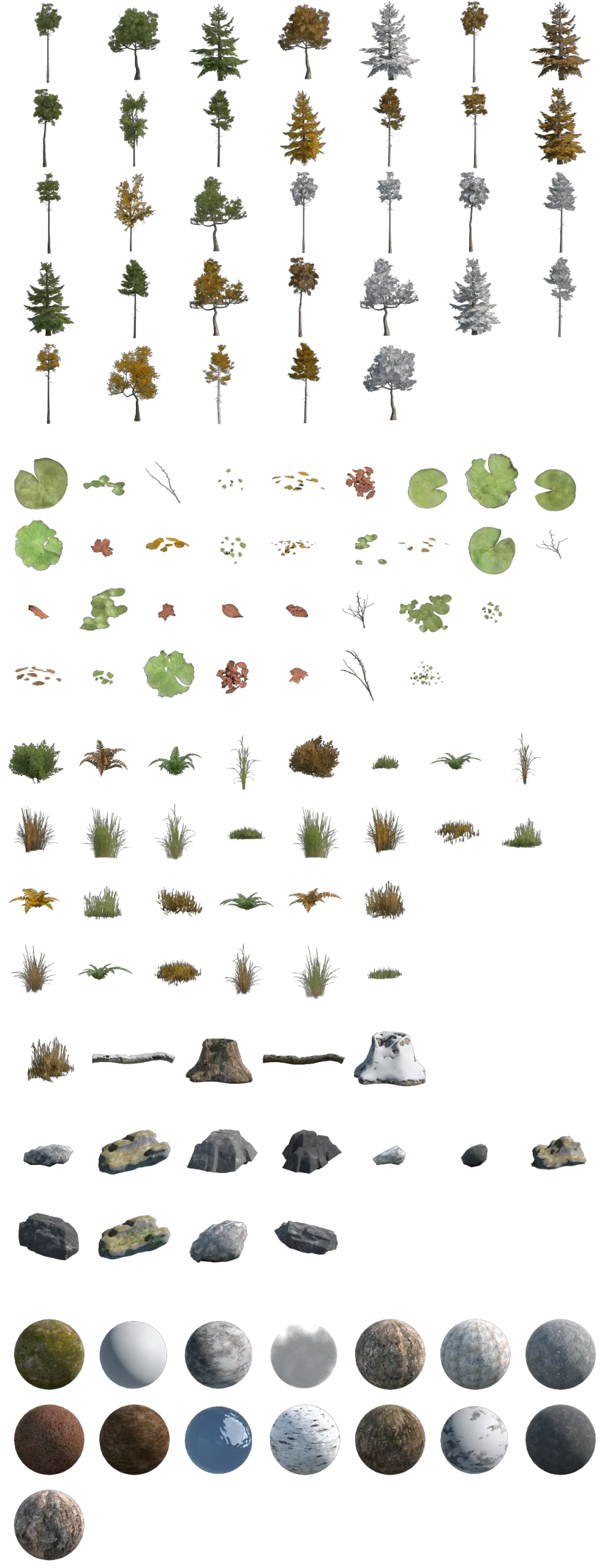 - 资产预设形式:包含140+树木资产预设,安装后在资产浏览器预览调用,直接拖拽即可使用